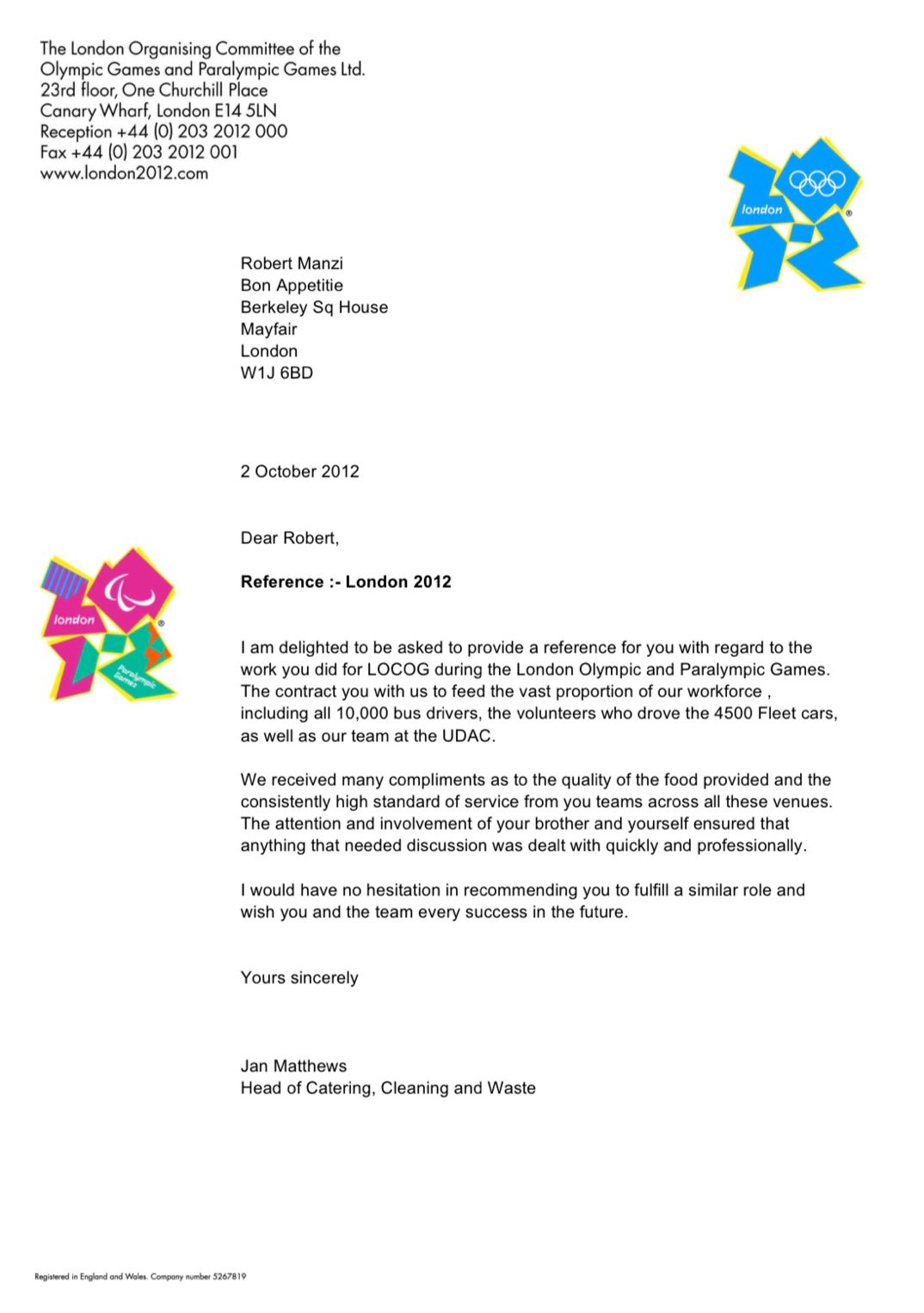 We look back with immense pride having played a part in delivering the biggest catering operation in peace time Britain.